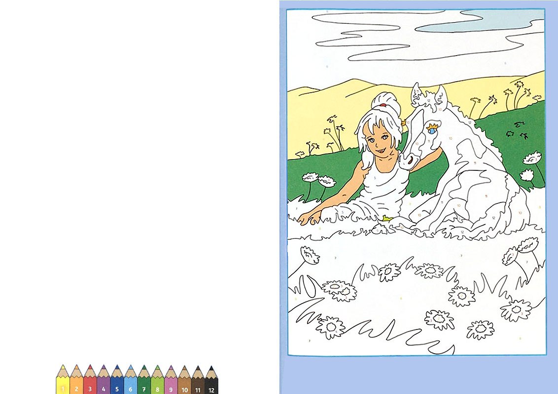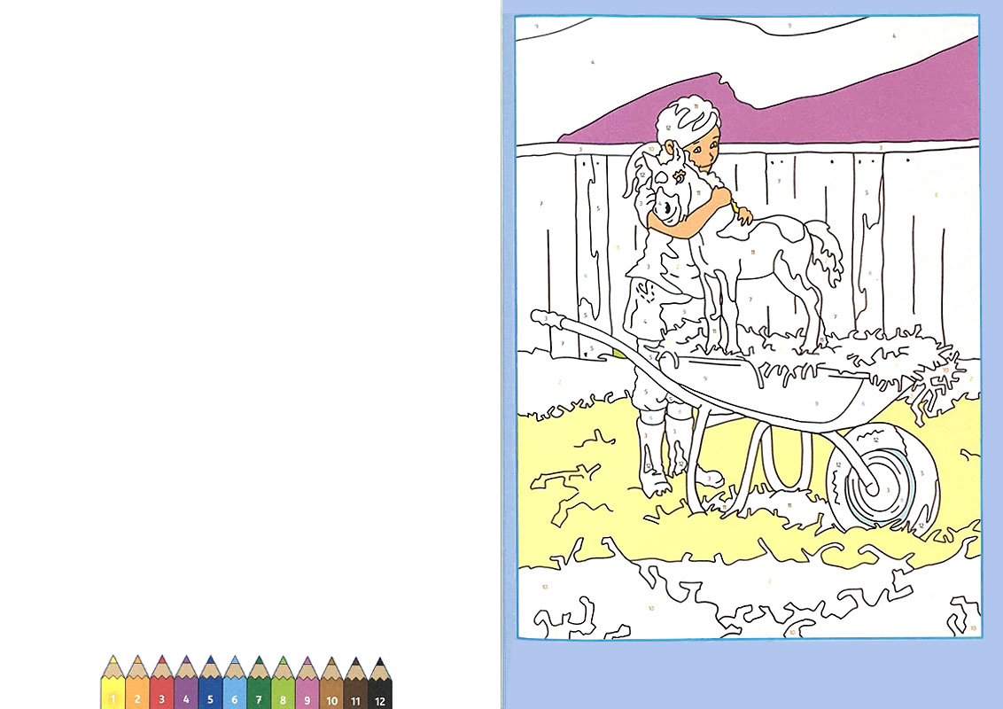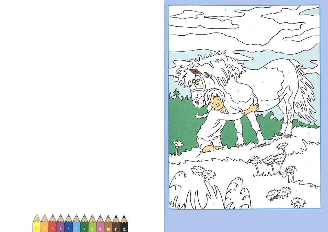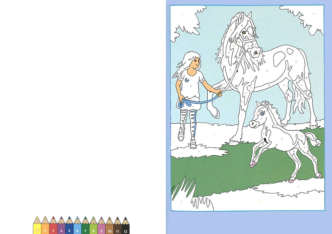 Alle Ausmalfelder enthalten Zahlen, die die Farben vorgeben. Feld für Feld entstehen so ansprechende, detailreiche Bilder.