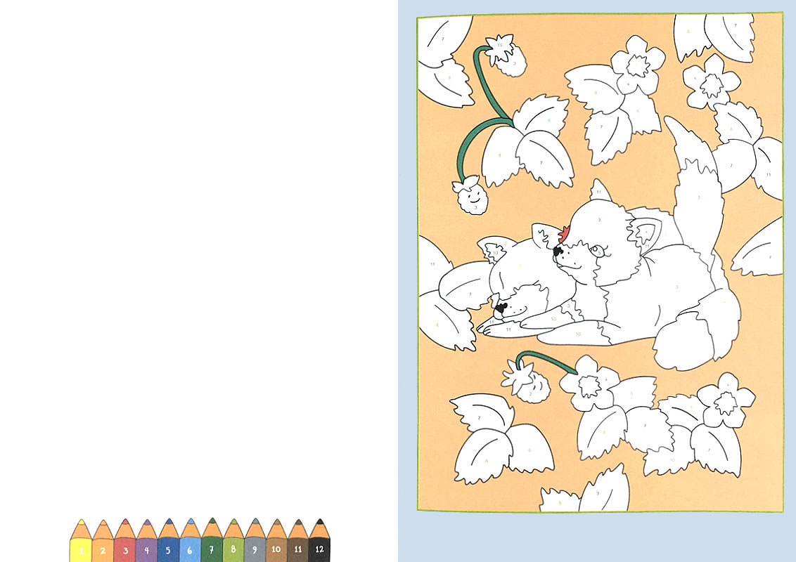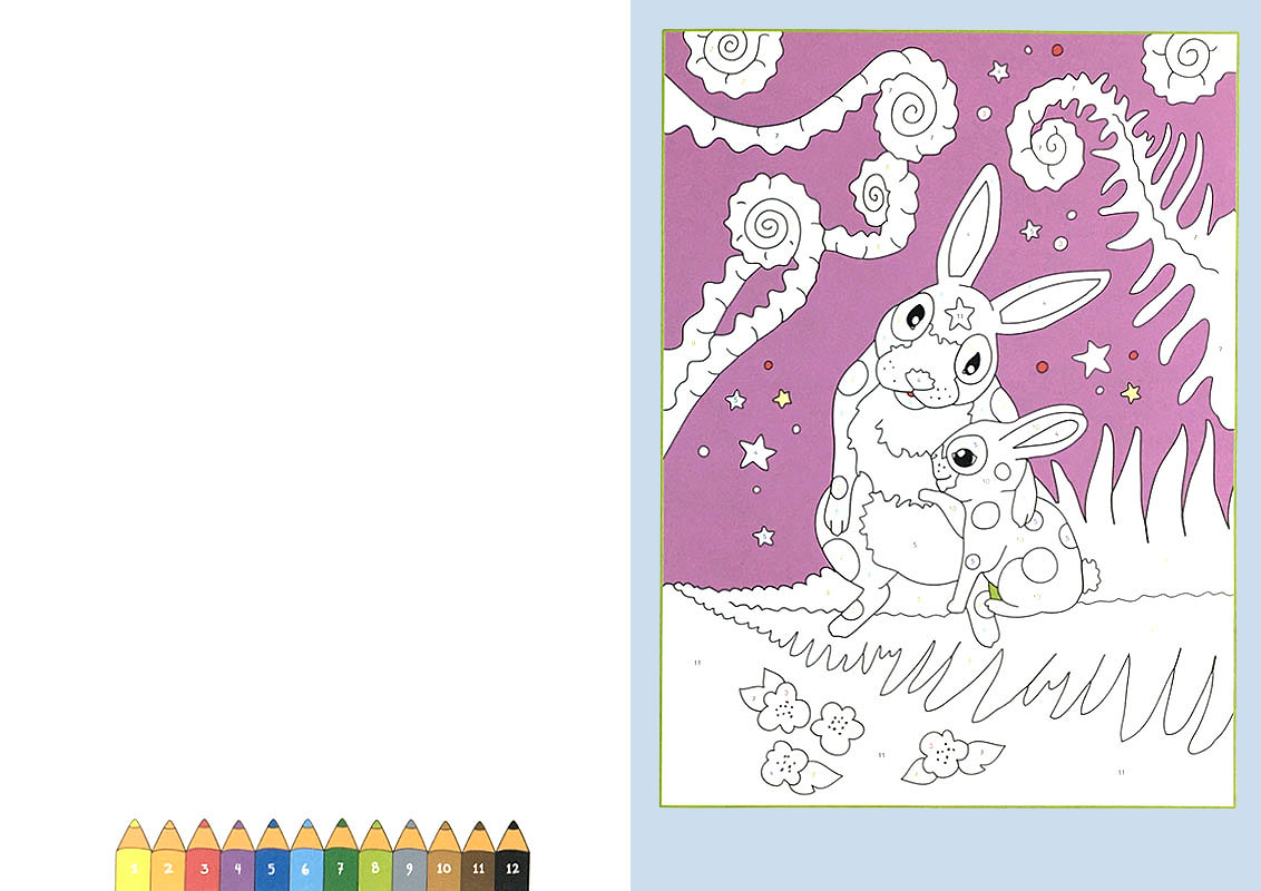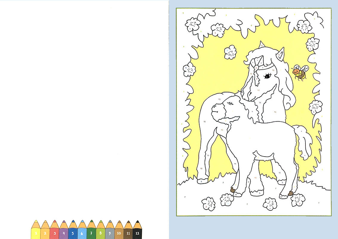 Alle Ausmalfelder enthalten Zahlen, die die Farben vorgeben. Feld für Feld entstehen so ansprechende, detailreiche Bilder.